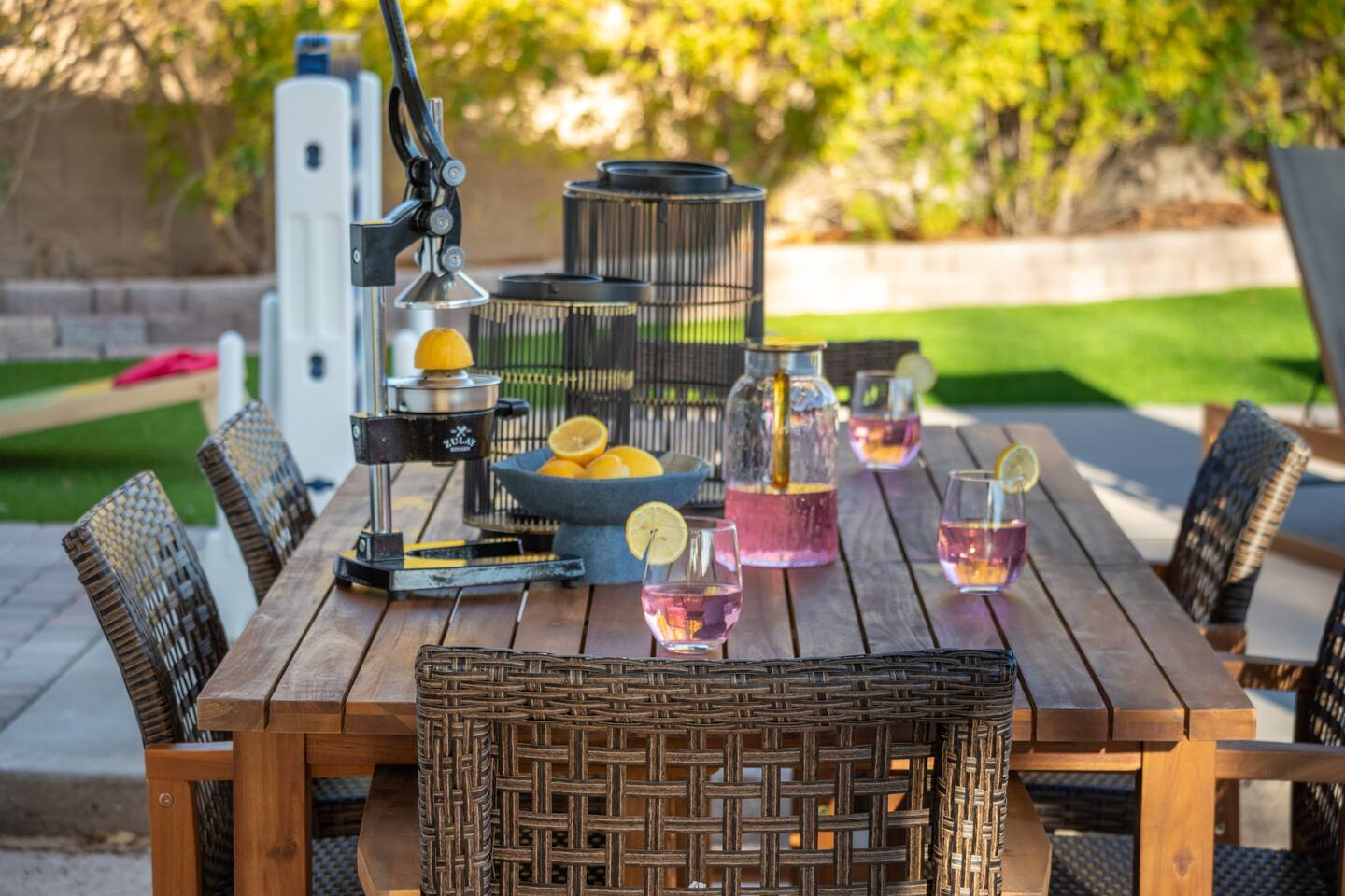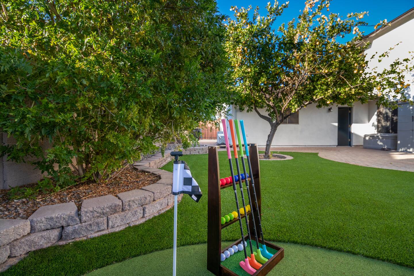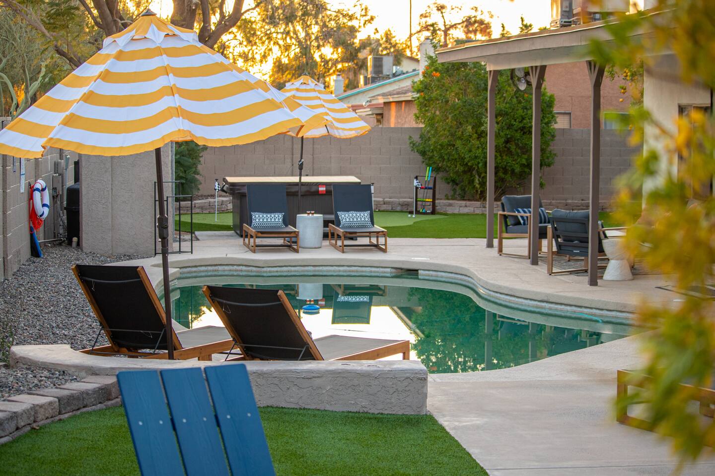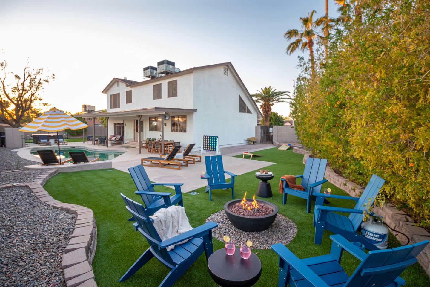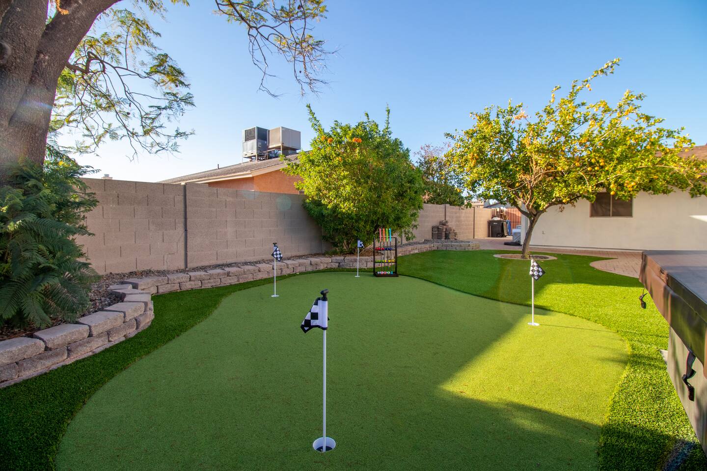 🌵FREE Heated Swimming Pool 🌵Putting green & large fully turf back yard 🌵Private Jetted Hot Tub 🌵Game room with AC & HUGE 75" TV 🌵Pool/ping pong table, Arcade Games 🌵Outdoor Gas Firepit 🌵Newly renovated - 5 BR's 🌵Professional design with Southwest charm 🌵Huge Chef's kitchen 🌵Covered patio, dining area & outdoor fans 🌵2 Main floor living & dining areas 🌵Huge picture windows with pool views 🌵Vintage popcorn maker & mini bar 🌵Ripe lemons on tree Dec-April 🌵Crib/booster upon request