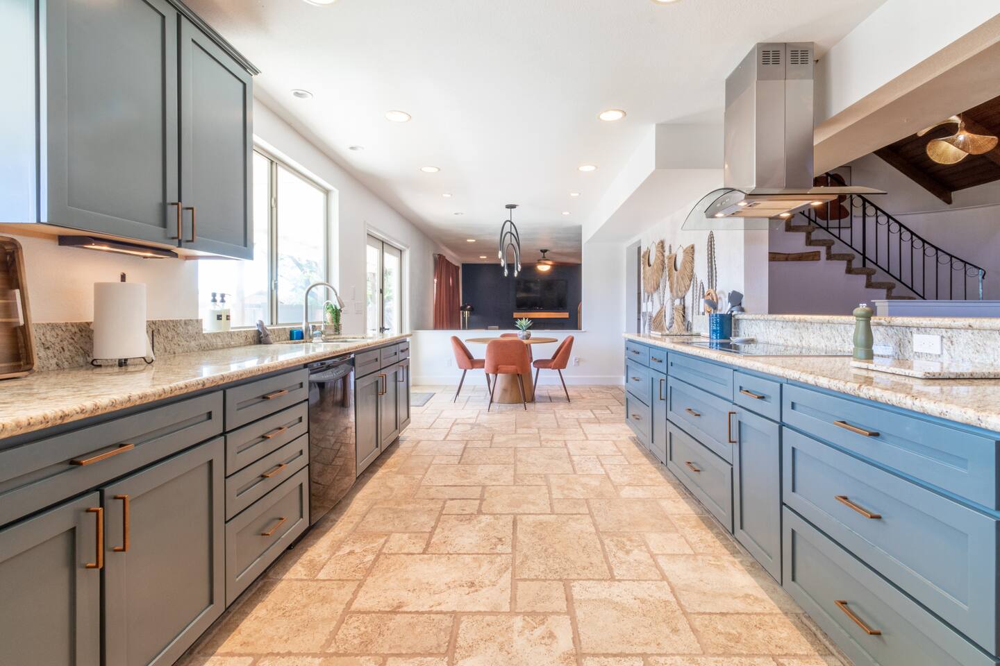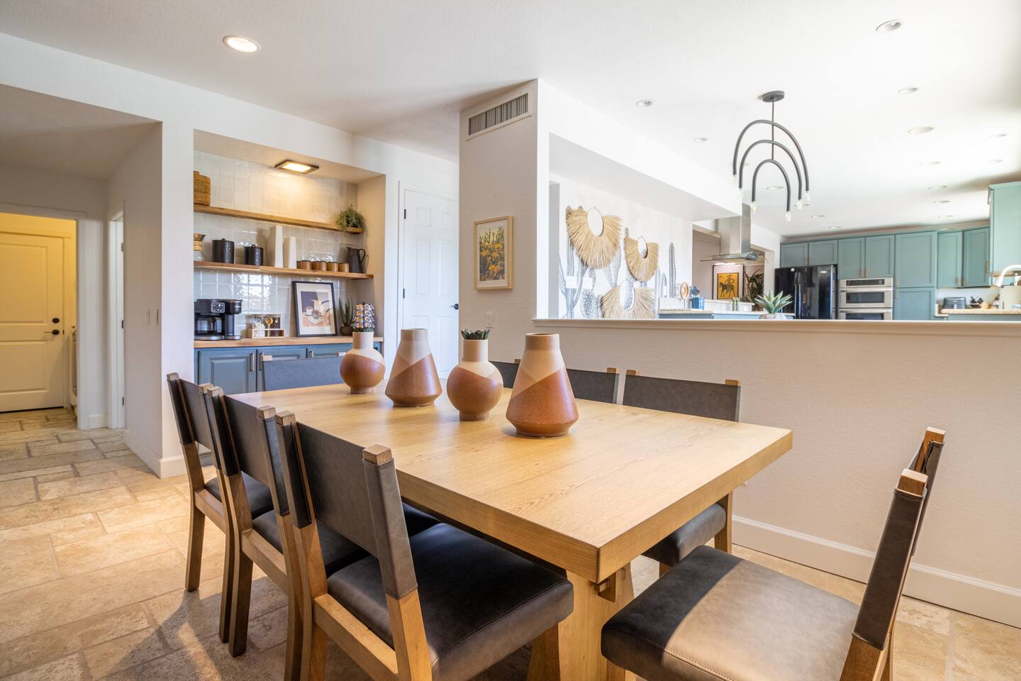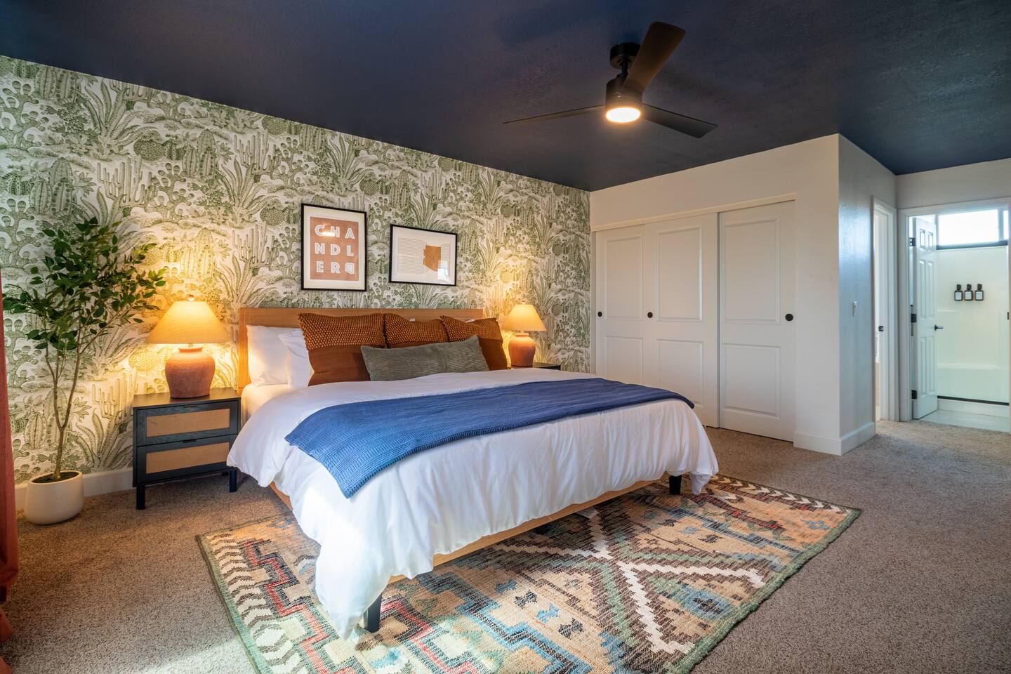 The Milky Way Sun Chalet is a gorgeous, newly renovated, professionally designed, 5 BR home has classic Southwest charm and is sure to please all! Our spacious living area, kitchen and dining areas flow seamlessly with great backyard views and lots of inviting, cozy visiting spaces. The sprawling game room with AC has a HUGE 75" TV, pool table, popcorn maker, arcade games and mini bar and those who prefer the sunshine will enjoy our poolside lounges, putting green, hot tub, heated or cooled pool and fire pit area! Don't wait to book or you might miss out on this gorgeous new listing! 🌵 LIVING ROOM🌵 ◆ Open beam ceilings, lots natural light ◆ Large sectional sofa with Pillows & Throw Blankets ◆ 65" Smart TV ◆ Comfy Accent Chairs & Ottomans ◆ Coffee Table ◆ Adjacent kitchen bar with 4 stools 🌵 KITCHEN & DINING🌵 ◆ Fully equipped Chef's kitchen ◆ Spacious countertops and cabinetry ◆ Convection oven/Microwave combo ◆ Electric Stove top ◆ Double Oven ◆ Toaster ◆ Full size Blender ◆ Individual juicing blender ◆ Air Fryer ◆ Electric skillet ◆ Rice maker ◆ Keurig Coffee Maker ◆ Double-Door Refrigerator/Freezer ◆ Dishwasher ◆ Sink - Hot & Cold purified Water ◆ Trays ◆ Serving bowls/dishes ◆ Kid friendly dishes ◆ Glasses ◆ Silverware ◆ Pots & Pans ◆ Basic Spices ◆ Commercial grade juice press ◆ 2 Dining Tables with Seating for 12 total ◆ Kitchen Bar with Seating for 4 🌵 SLEEPING ARRANGEMENTS – 5 BEDROOMS🌵 ◆Master Bedroom (upstairs): King-Size Bed, workspace/desk, ensuite bathroom with soaker tub, 50" smart TV ◆ Bedroom 2 (upstairs): Queen-Size Bed ◆ Bedroom 3 (upstairs): Queen-Size Bed ◆ Bedroom 4 (upstairs): 2 Twin Bunk Beds (4 twin beds), 43" smart TV ◆ Bedroom 5 (downstairs): Queen-Size Bed, workspace/desk, 43" smart TV ◆ Family Room: Fold out couch/bed - full size, 60" smart TV All bedrooms offer a similar set of amenities: ◆ New Memory Foam mattresses ◆ Premium Pillows, Linens, and Sheets ◆ Extra Blanket ◆ Closets with Hangers and Shelves ◆ Night Stands with Reading Lamps ◆ Luggage Racks ◆ USB charging stations 🌵 BATHROOMS 🌵 ◆ Ensuite master with double sinks, soaker tub, separate shower/toilet room ◆ Upstairs guest bath with full tub/shower and toilet room separate from single vanity ◆ Downstairs tile shower stall, toilet, single vanity ◆ Game room with private toilet All main bathrooms have essential toiletries: ◆ Hand Mirrors ◆ Shower, hand, face and make-up towels ◆ Q-tips and cotton pads ◆ Hair Dryers ◆ Shampoo, conditioner, shower gel ◆ Hand soap and lotion 🌵 GAME ROOM 🌵 This converted 3rd bay garage space air conditioned and fully insulated with a mini-bar and its own private toilet room. ◆ Pool Table converts to ping pong and dining table ◆ Vintage theater style popcorn maker ◆ Dart board ◆ Cozy Sectional Sofa with Pillows ◆ Bean bag chairs ◆ 75"Smart TV ◆ Arcade games ◆ Board games ◆ Mini Bar (glasses, sink, mini-fridge) 🌵BACKYARD 🌵 ◆ Heated/Cooled Pool (no extra charge, but temperature may vary based on weather conditions) ◆ Jetted Hot tub ◆ Putting Green with glow in the dark balls ◆ Yard Games (Cornhole, Life-Size Connect 4, bocce ball) ◆ Fully turfed yard ◆ Outdoor hanging lights and patio fans ◆ Covered Couch/Seating Area Under Patio ◆ Covered outdoor Dining Table ◆ 6 Sun Lounges with 2 umbrellas ◆ Gas BBQ ◆ Gas Firepit ◆ Lemon Tree with fruit picker (seasonal fruit) Both side yard access gates are locked for the safety of all given that we DO NOT have safety fencing or a gate around the pool. Guests must sign a separate hot tub and pool waiver within 48 hours of booking to confirm reservation. 🌵 NEIGHBORHOOD 🌵 ◆ Community walking path directly behind our house ◆ Quiet, peacefully neighborhood ◆ 2 community parks within walking distance have basketball courts, sand volleyball courts, playgrounds, tennis courts, a pond and even a train ride (Desert Breeze Park and Mountain View Park) ◆ 6 min (1.9 mi) to Chandler Fashion Center Mall ◆ 15 min (11 mi) to Sloan Park (Cubs Baseball Stadium) ◆ 12 min (5.9mi) to Firebird Motorsports Park ◆ 20 min (14 mi) to Top Golf - Gilbert ◆ 21 min (17 mi) to Phoenix Zoo ◆ 23 min (18 mi) to Chase Field (Arizona Diamondbacks) ◆ 28 min (18 mi) to PHX arena (Phoenix Suns) ◆ 21 min (13 mi) to Arizona State University Campus ◆ 20 min (17 mi) to Revel Surf ◆ 18 min (14 mi) to PHX Sky harbor Airport ◆ 25 min (15 mi) to Mesa Gateway Airport *Drive times are estimates and may vary greatly depending on traffic Arizona TPT license # 21600025 City of Chandler license # 309122